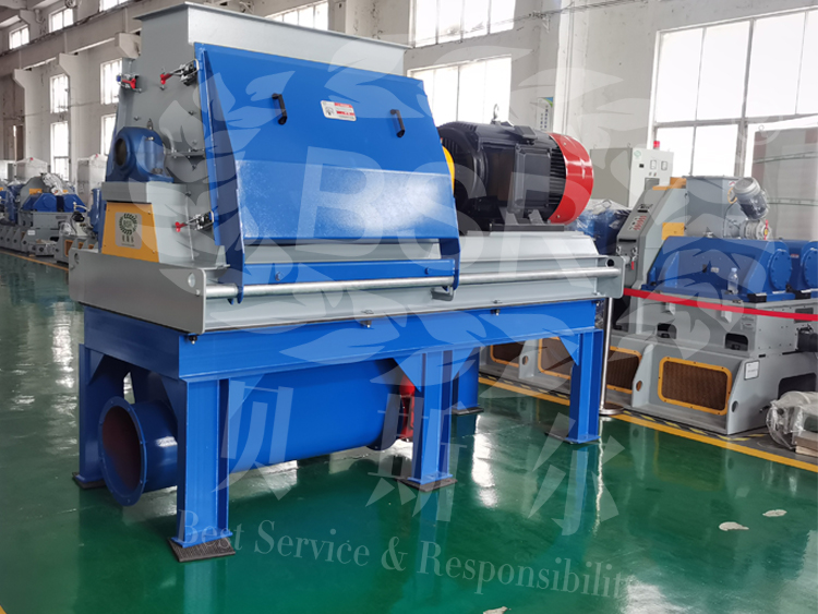 BSR多功能粉碎機主要用於處理經過撕碎機或者削片機處理的木料(物料尺寸要求為長度和寬度不大於3CM,厚度不大於2CM),可通過錘片將木料破碎至較小顆粒屑粉。主要是靠衝擊能來完成粉碎物料作業的。粉碎機工作時,電機帶動轉子作高速旋轉,物料均勻進入粉碎機腔中,高速回轉的錘頭衝擊、剪切撕裂物料致物料被破碎,同時,物料自身的重力作用使物料從高速旋轉的錘頭衝向架體內擋板、篩條,在轉子下部設有篩板、粉碎物料中小於篩孔尺寸的顆粒通過篩板排出,大於篩孔尺寸的物料阻留在篩板上繼續受錘子的打擊和研磨,直到破碎至所需顆粒大小最後通過篩板排出機外。