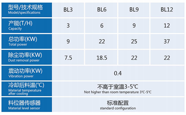 冷卻塔利用逆流冷卻原理對高溫、高濕的顆粒進行冷卻,避免了冷風與熱料直接接觸而產生驟冷現象,因而能防止顆粒產生表麵開裂,同時由於采用閉風器進料,且進風麵積大,因此冷卻效果顯著;采用滑閥往複式排料機構,運動平穩、可靠,殘留小;能耗低、操作簡便;冷卻後成品溫度不高於室溫3℃-5℃;適用於顆粒物料的冷卻。
